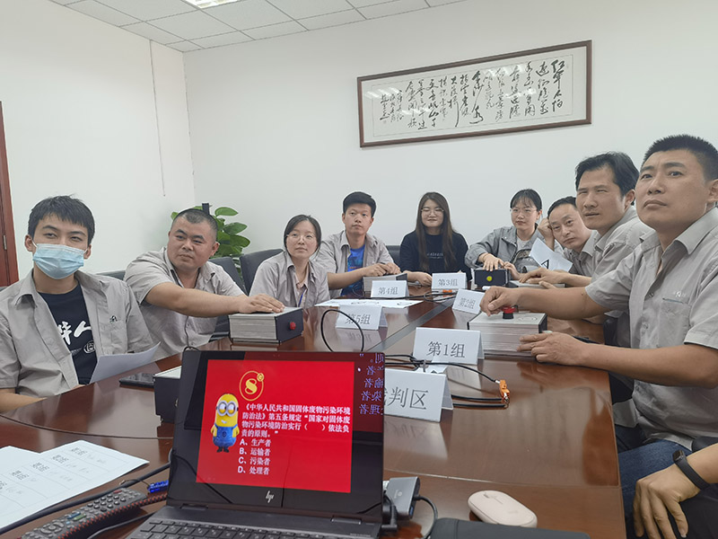 本次比賽分為“過關斬將(必答題)”、“速度與激情(搶答題)”、“一答定乾坤(風險題)”三個環節。每一環節題目均以“安全、環保、消防和職業健康”法律法規、安環消常識,安全隱患識別及預防為主要內容,輔以職業病的預防、現場安全及環境保護相關知識。比賽籌備小組在賽前認真篩選題目,難易結合、循序漸進。比賽中的搶答器為員工利用現場物資自制,增加了比賽的趣味性。